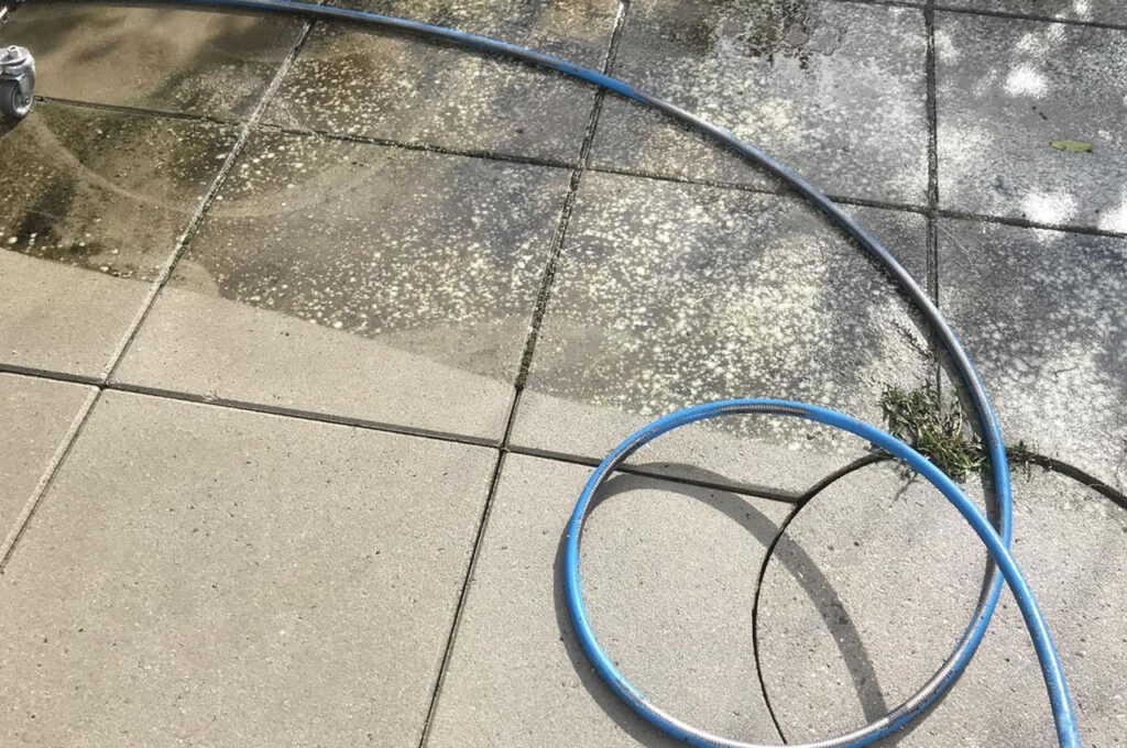 Ved algebehandling af fliser sprøjter vi fliserne, så de alger, der måtte være der, dør.